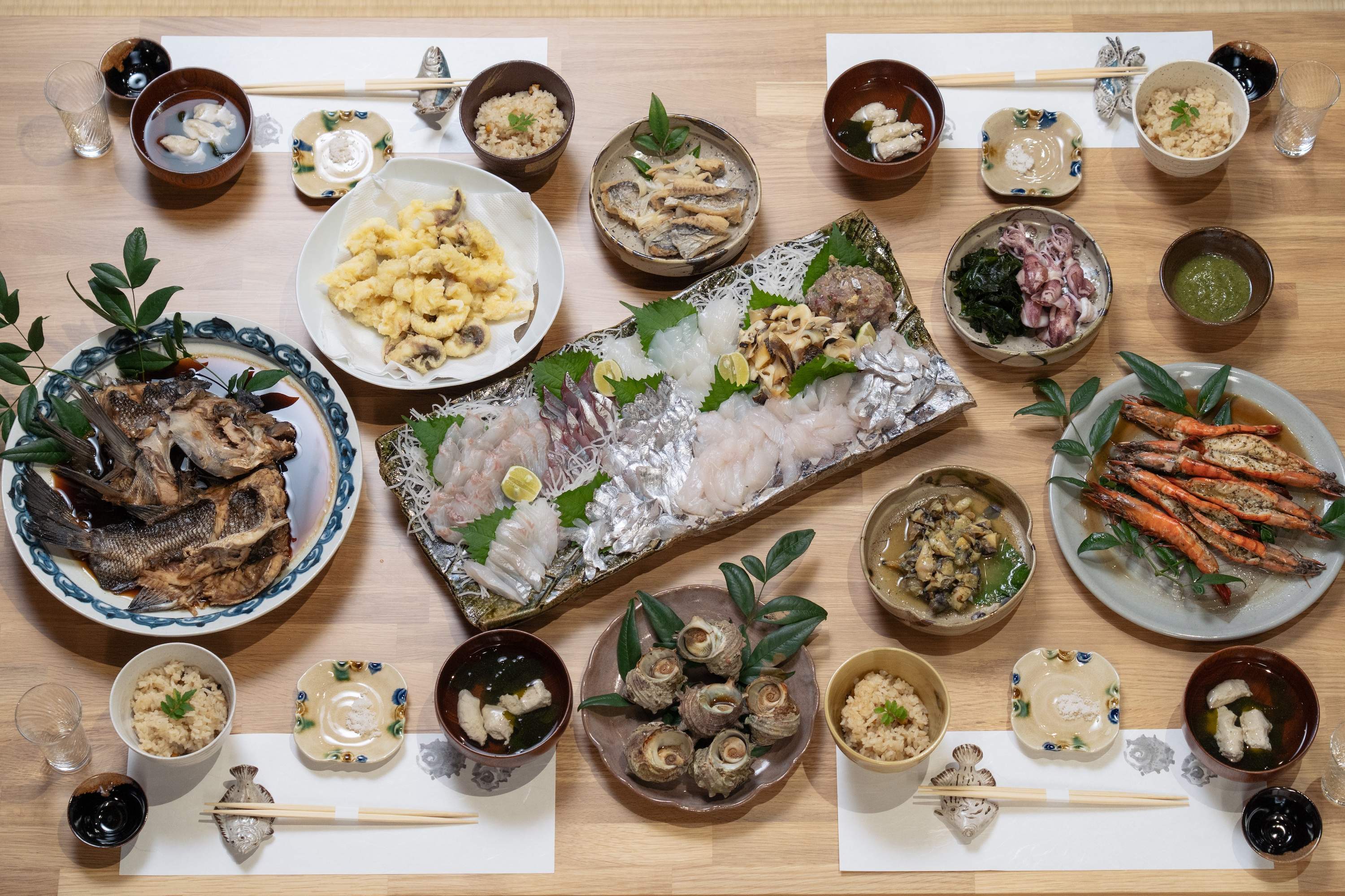 島の漁師が調理し、島で暮らすお母さんたちが配膳をし、島のみんなでおもてなしいたします。島の恵みがたっぷりのお食事をお楽しみください。